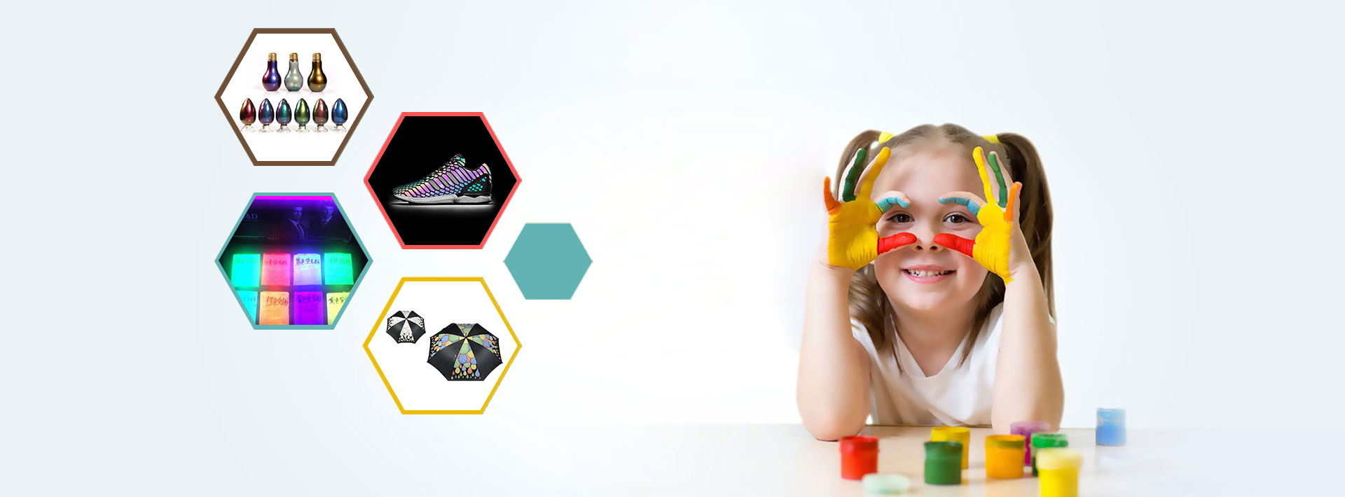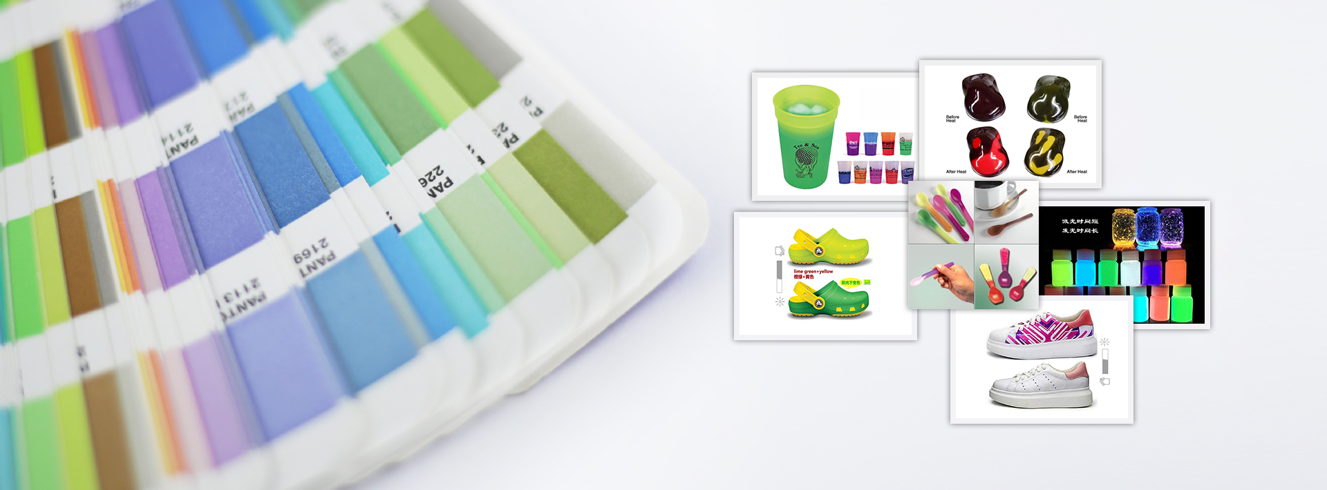 變色新材料為投資各式變色材料之公司,已從單純的原料生產供貨商,積極轉型成為提供全方位服務的合作伙伴。目前生產感溫變色、感光變色、遇水變色、防偽熒光變色、液晶變色、折光變色、化學變色、夜光發光、長效香味等功能性材料。應用領域涵蓋玩具、紡織面料、印刷噴涂、塑料制品、飾品、皮革、包裝防偽、電子等。創新才有競爭力、服務才有客戶群,“變色新材料”深信只要堅持原則,努力不懈,便可昂首邁向世界前列的機能性材料供應商。